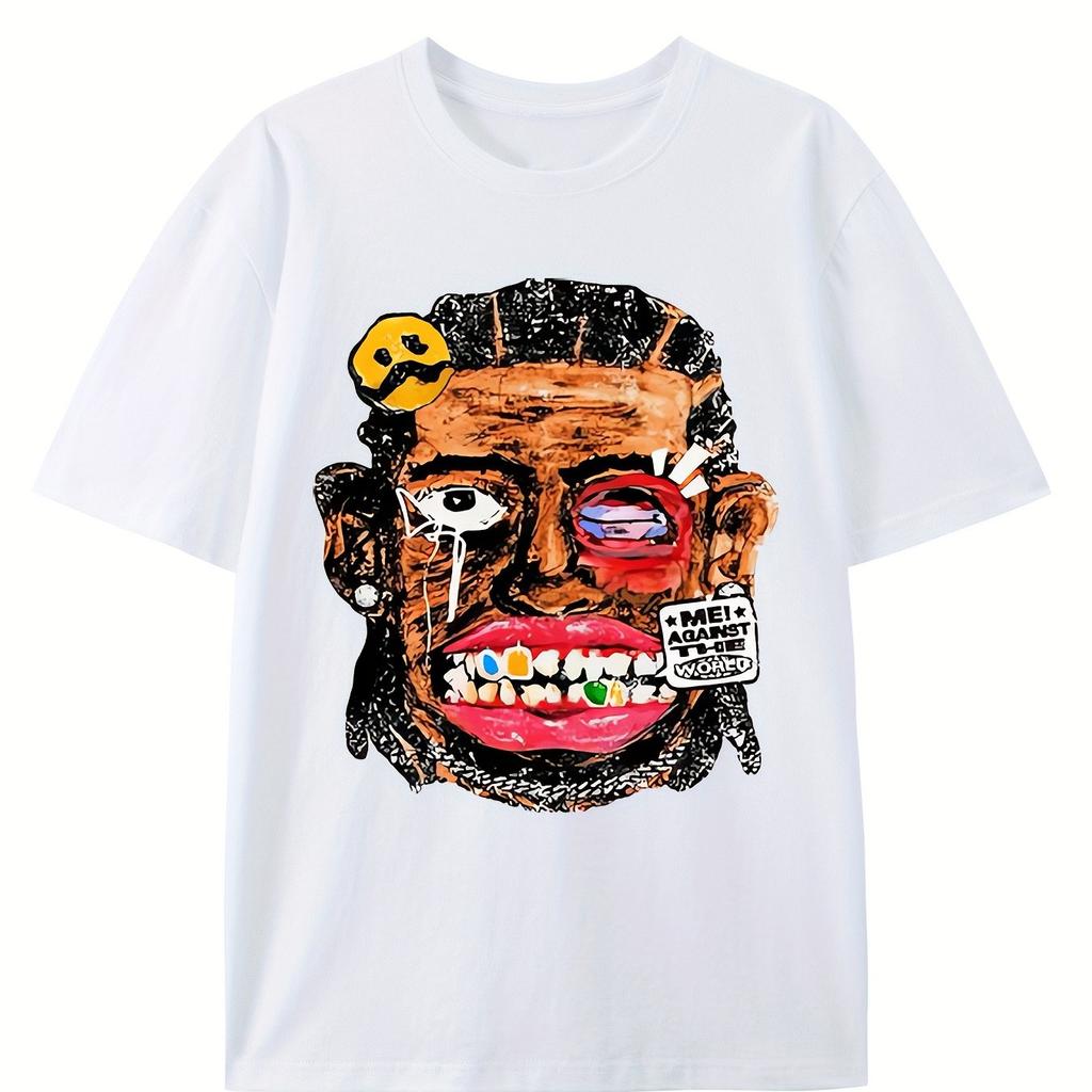 Mens Retro Hip Hop Street Art Graphic TShirt 100 Cotton 180gsm Soft Breathable Crew Neck Short Sleeve Tee