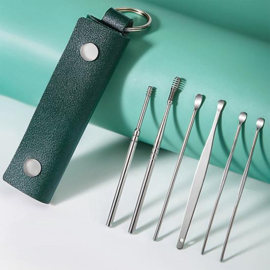 6dílná sada nerezových ušních lžiček spirálové nástroje na čištění uší s pouzdrem z umělé kůže domácí sada pro péči o uši pro domov cestování