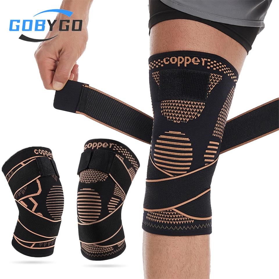 1Pcs Knee Support Knitted Nylon Copper Ion X-Type Stable Patella Compression Straps Ligament Strain Knee Pads Men Women