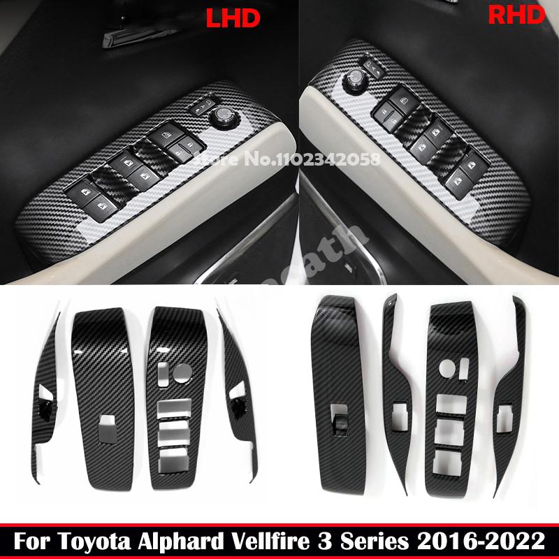 For Toyota Alphard Vellfire 30 series 2016- ABS carbonfiber Window Lift Control Cover glass Switch Lift button Panel Cover
