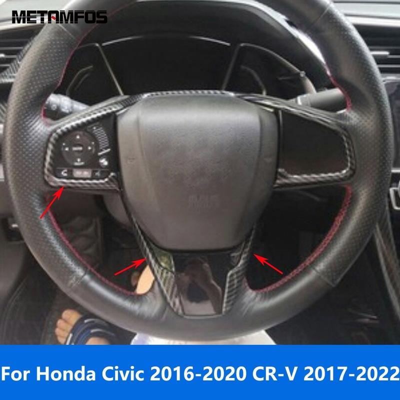 For Honda Civic 2016- CR-V CRV 2017- Carbon Fiber Steering Wheel Cover Molding Trim Frame Sticker Interior Accessories