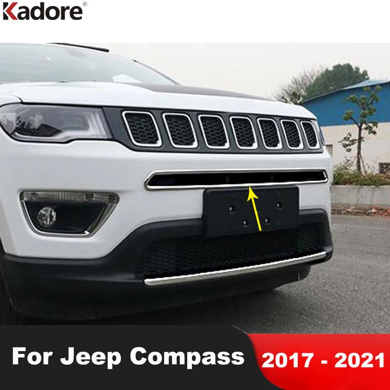 For Jeep Compass 2017 2018 Chrome Car Front Center Grille Grill Cover Trim Racing Grills Frame Trims Accessories