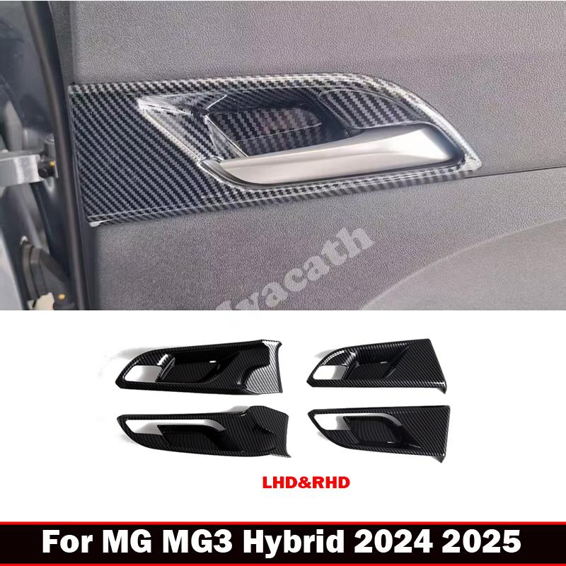 LHD RHD For MG3 Hybrid 2024 2025 ABS Carbonfiber Car Inner armrest Door Handle door Bowl cap strip Covers Interior Accessories