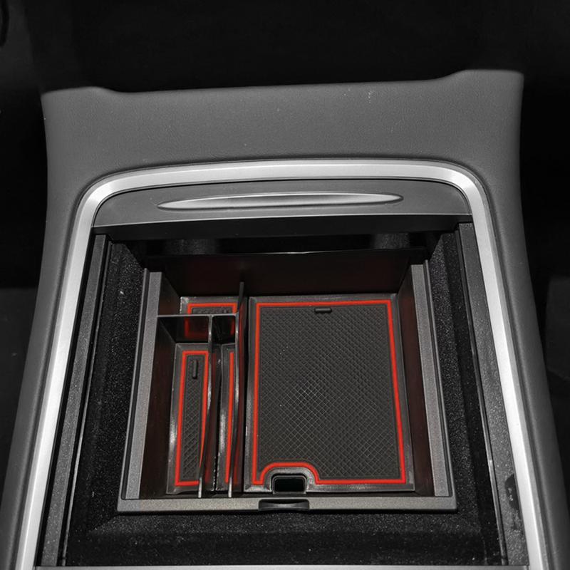 1pc Center Console Armrest Storage Box For Tesla Model 3 Y Accessories - Organizer Box Tray Flocking Lined/Silicone Mat