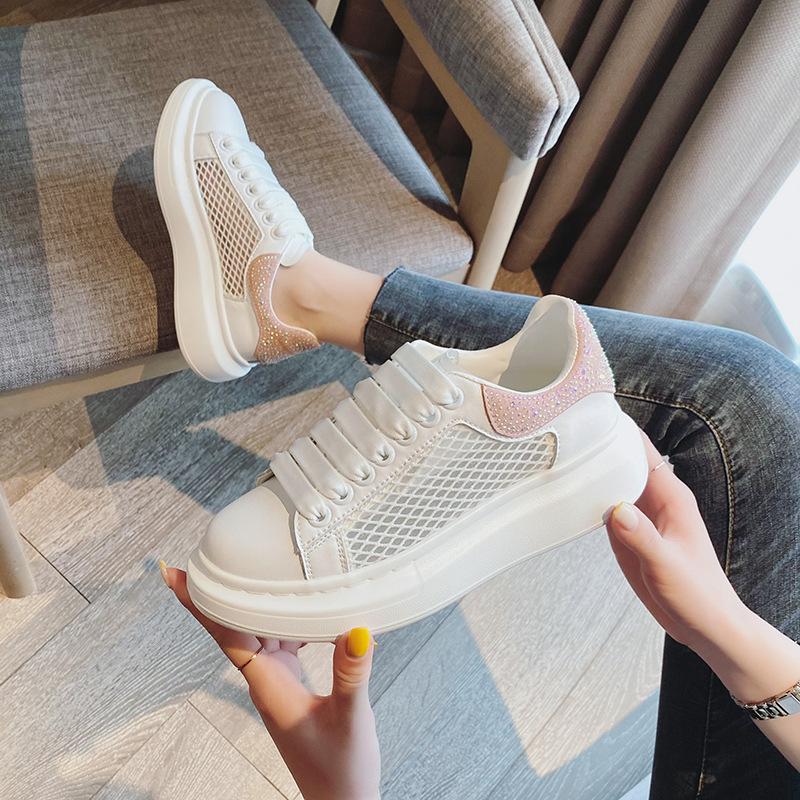 Women's leather shoes new single shoes mesh breathable rhinestone versatile sports and leisure board shoes pastel
