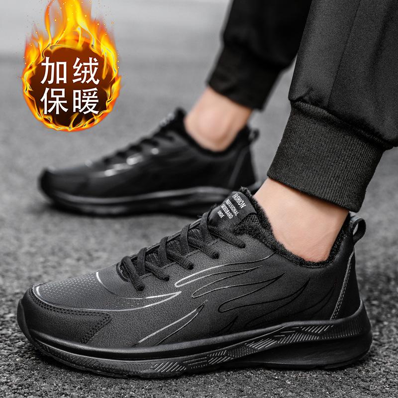Leather shoes velvet warm cotton shoes winter warm two cotton casual shoes leather rubber patch non-slip comfortable soft