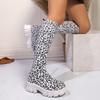 European and American large-size thick-soled long Martin boots, new leopard print casual boots in autumn and winter