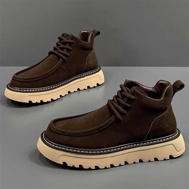 High-top shoes, winter flip leather shoes, high-end sense of leisure sports, thick-soled heightening Martin boots