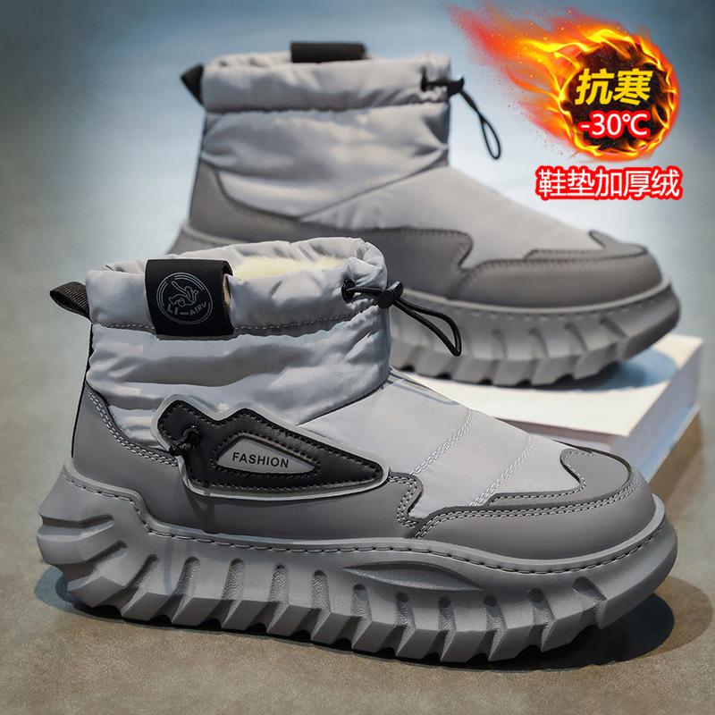 Shoes winter velvet thickened warm down cotton shoes outdoor fur integrated waterproof, non-slip and cold-resistant thick-soled cotton boots