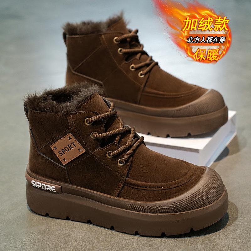 High-top shoes, new winter velvet cotton shoes, sports platform Martin boots, fur integrated snow boots