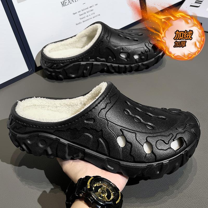 Large size cotton slippers winter indoor non-slip warm hole shoes outdoor piled thickened fluffy slippers