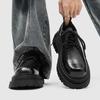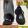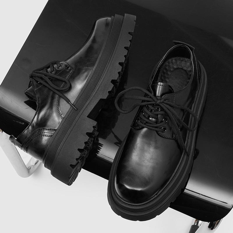 British style platform derby shoes, new black round head lace-up commuting height-increasing big head casual leather shoes