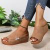 Large size platform casual slippers shoes new wide strip simple fish mouth wedge slippers
