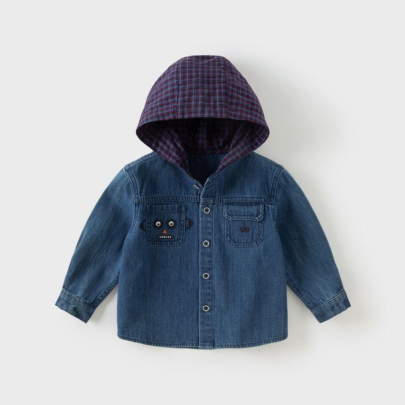 David Bella Boys' Shirt Kidsren's Pure Cotton Hooded Shirt 2026 Spring New Style Baby Denim Jacket Top