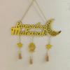 Islámský Ramadan Eid Mubarak Dřevěná Nástěnná Dekorace Zlatý Akrylový Měsíc Hvězda Lucerna Třásně Závěsné Ozdoby pro Muslimský Domov Večírek Dárek