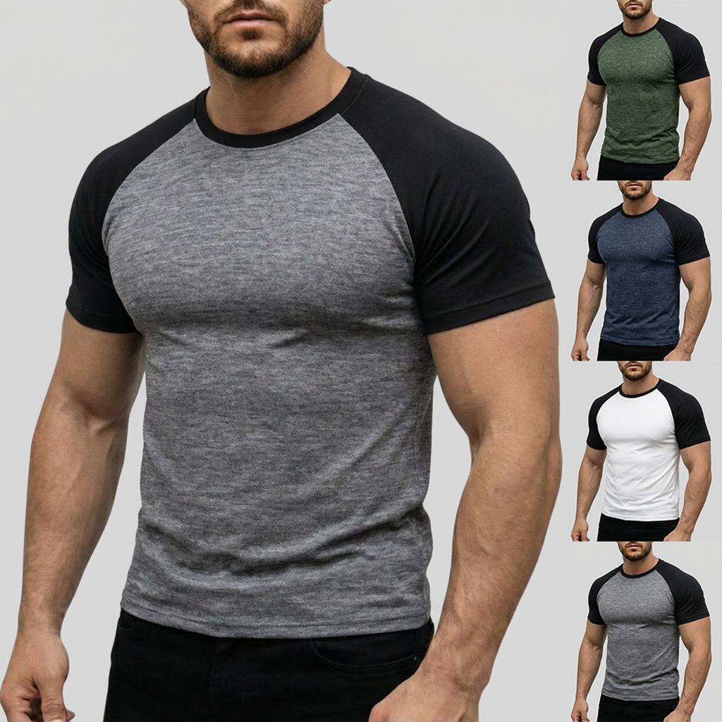 Pánské tričko s barevnými bloky, raglánovými rukávy a kulatým výstřihem Pánské ležérní módní tričko