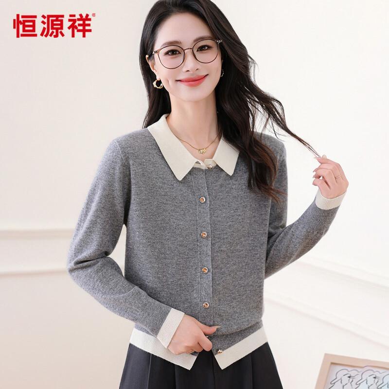 Hengyuanxiang Women's 100% Wool Color Block Cardigan