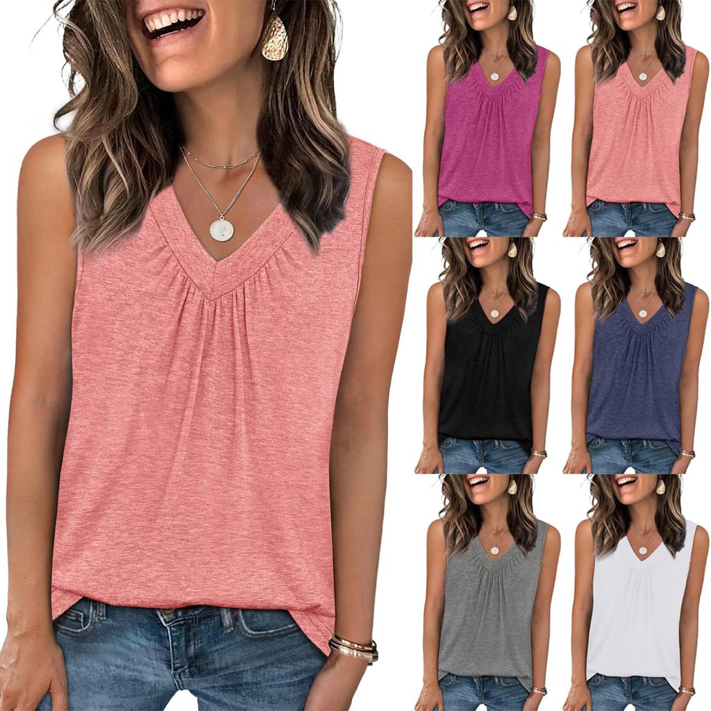 Women's Fashion Color V-Neck Sleeveless Ruffled Vest T-Shirt Top