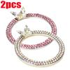 2pcs Car One Click Start Decorative Ring Button Diamond Sticker Bling Double Row Crystal Butterfly Ignition Ring Decorative Ring
