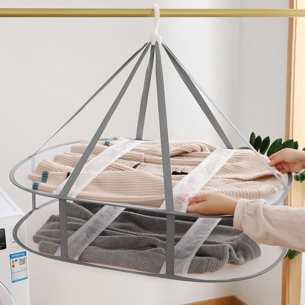 Foldable Clothes Drying Rack Mesh 3-Tier Lay Flat Hanger Space Saving With Hanging Hook Laundry Organizer Sweater Towel Socks