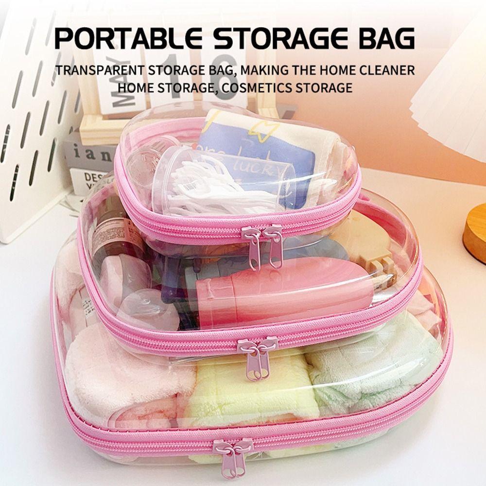 Plastic Clear Hard Shell Zipper Case Heart Waterproof Toy Storage Organizer Bins Stackable Portable Cosmetic Bag