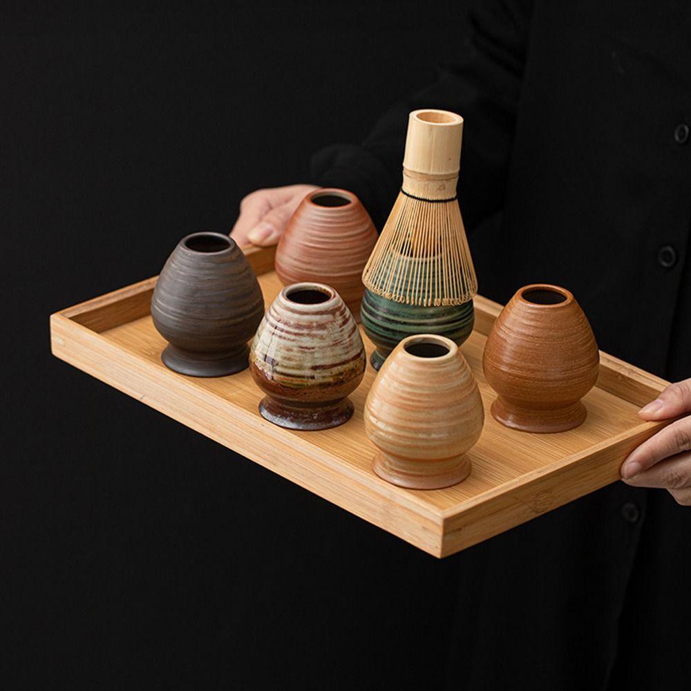 Ceramic Matcha Holder Kiln Discoloration Smooth Whisk Stand Holder Handmade Bamboo Matcha Chasen Holder for Tea Set Accessories
