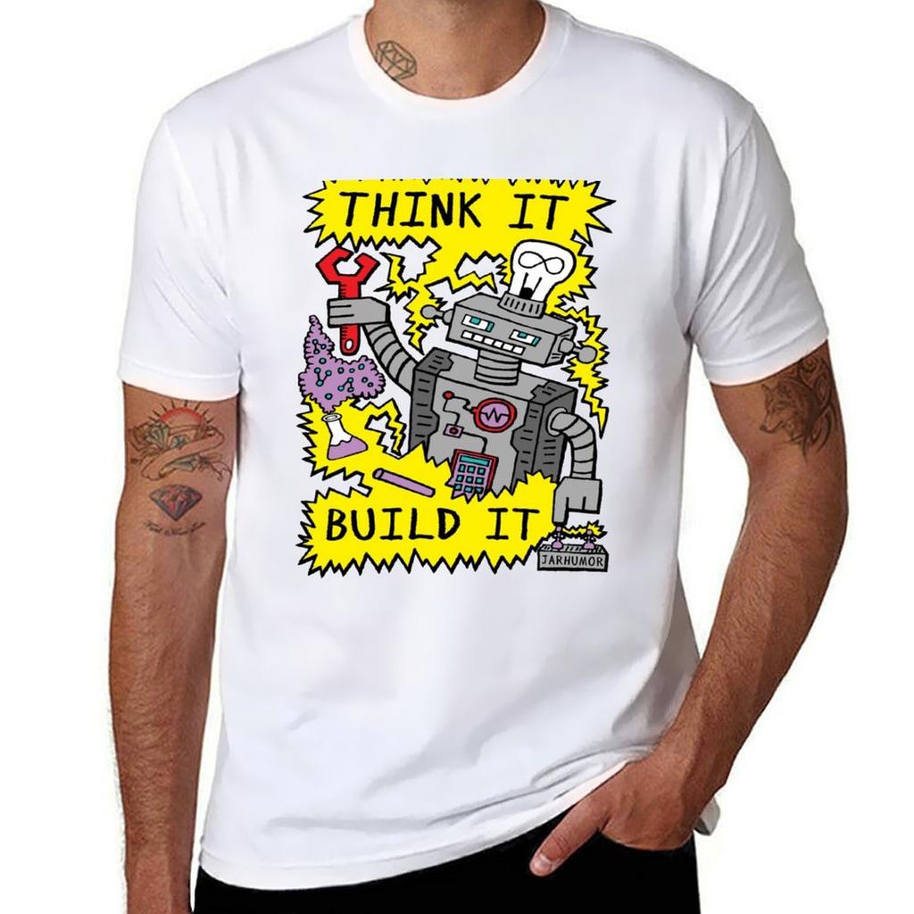 Think Build Robot TShirt t shirts for man slim fit anime t shirts for man TShirt
