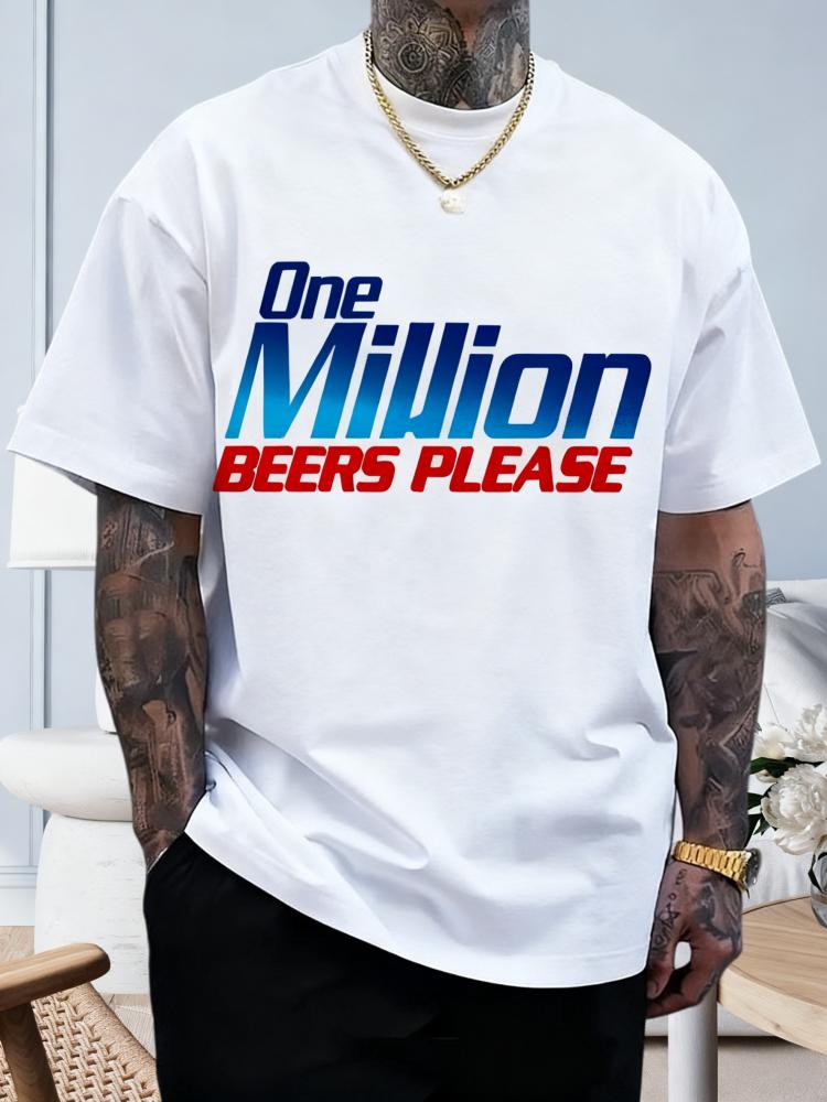 New Funny One Million Beers Please Beer Drinking Pattern Printed Cotton Tshirt Fashion Casual Short Sleeve Round Neck Tshirt