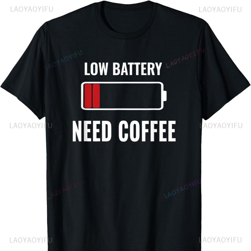 Low Battery Need Coffee Shirt Funny Sayings Cotton Tshirt Harajuku Aesthetic Clothes Women Clothes Oversized T Shirt Tops goth