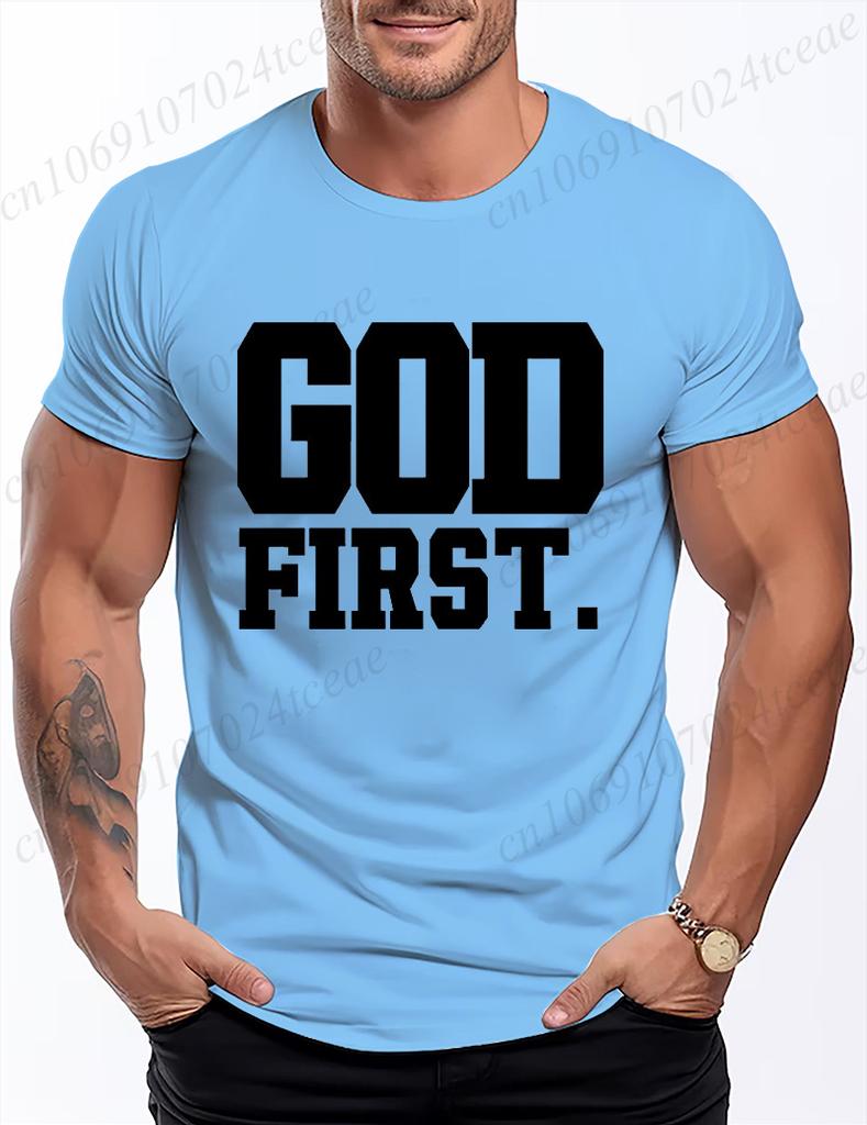 Funny God First Graphic Tshirt for Men Women Clothing Fashion Style T Shirts Y2K Tops Casual Shortsleeve Tshirt Streetwear