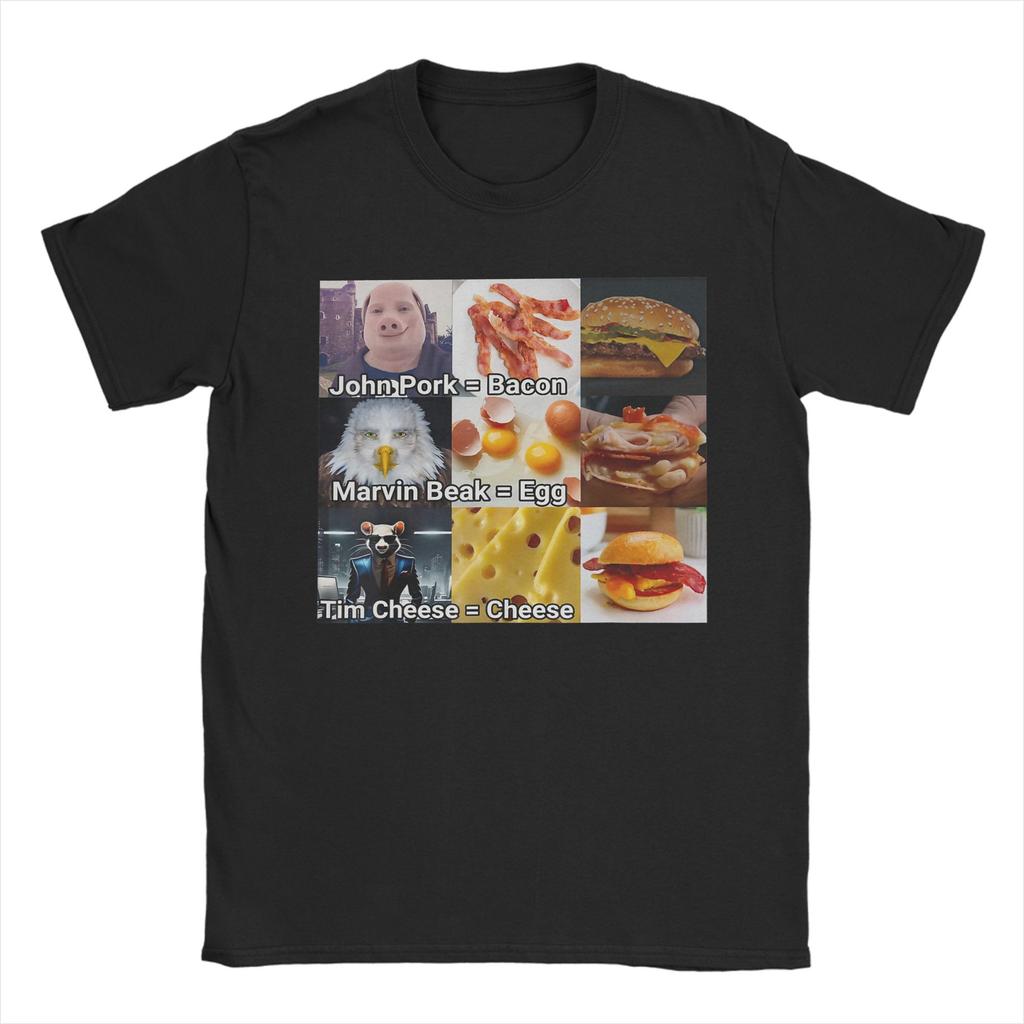 Men John Pork Marvin Beak Tim Cheese Funny Bacon Egg Cheese T Shirts Pure Cotton Clothing Novelty Tee Shirt Summer TShirts