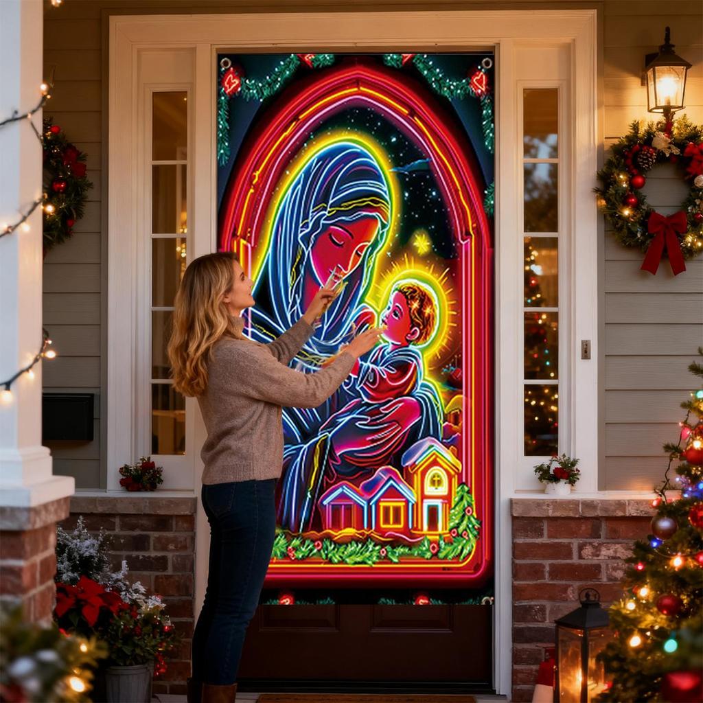 Christmas Door Cover Decoration Fabric Fluorescent Religious Jesus Scene Backdrop Christmas Porch Sign Banner Decor For Indoor