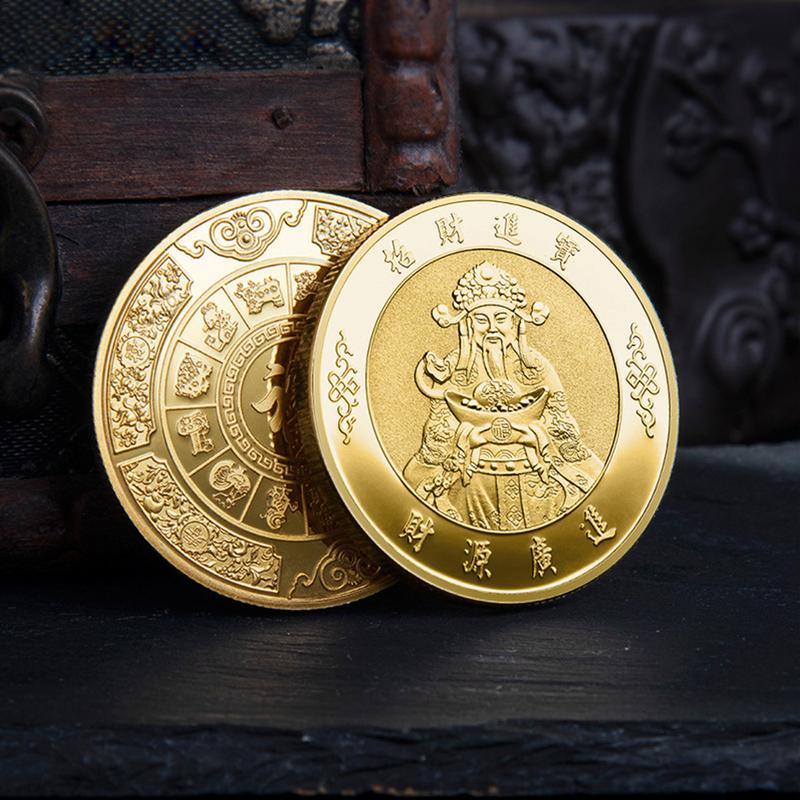 Money And Treasures Will Be Plentiful Lucky Badge Chinese Style May Wealth Come Generously To You God Of Wealth Gold Coin