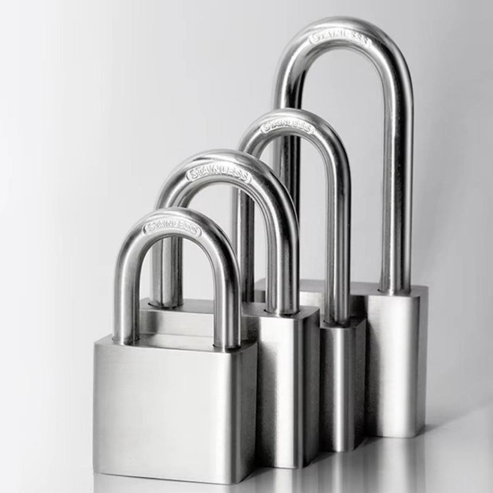 304 Stainless Steel Door Lock Padlock Silver Heavy Duty Solid Lock Anti-theft Waterproof Antirust Street Lock