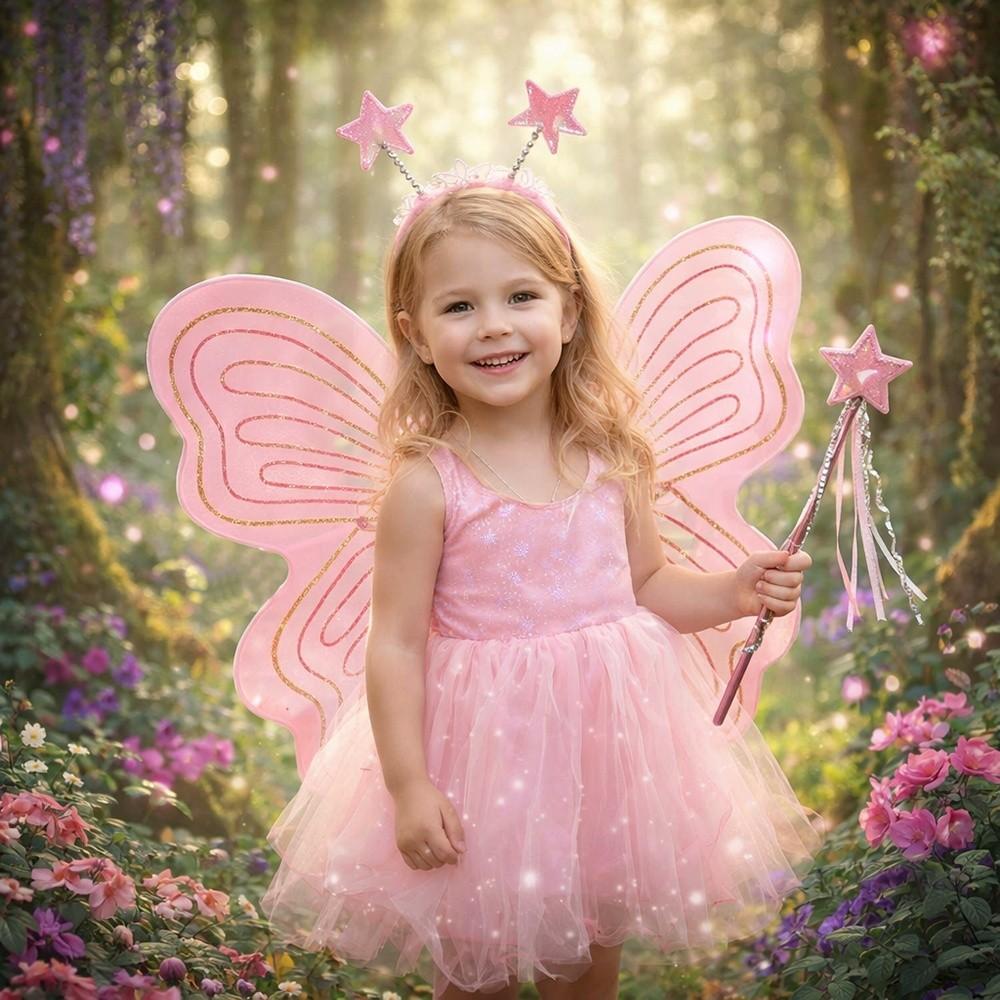 3Pcs/Set Sparkling Butterfly Wings Princess Hair Hoop Colorful Angel Wings Fairy Wand Butterfly Costume Wings