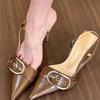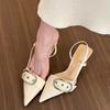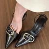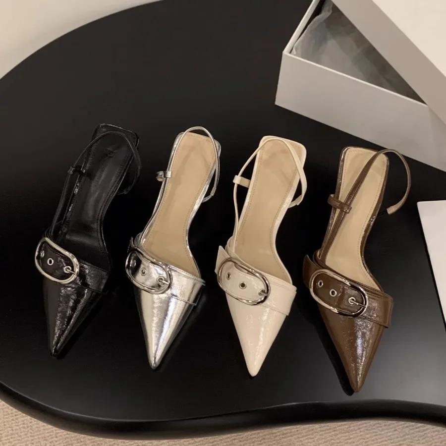 Women's Sandals Fashion Belt Buckle Design Women's Sandals Temperament Pointed Leather Sandals for Women High Heels Single Shoes