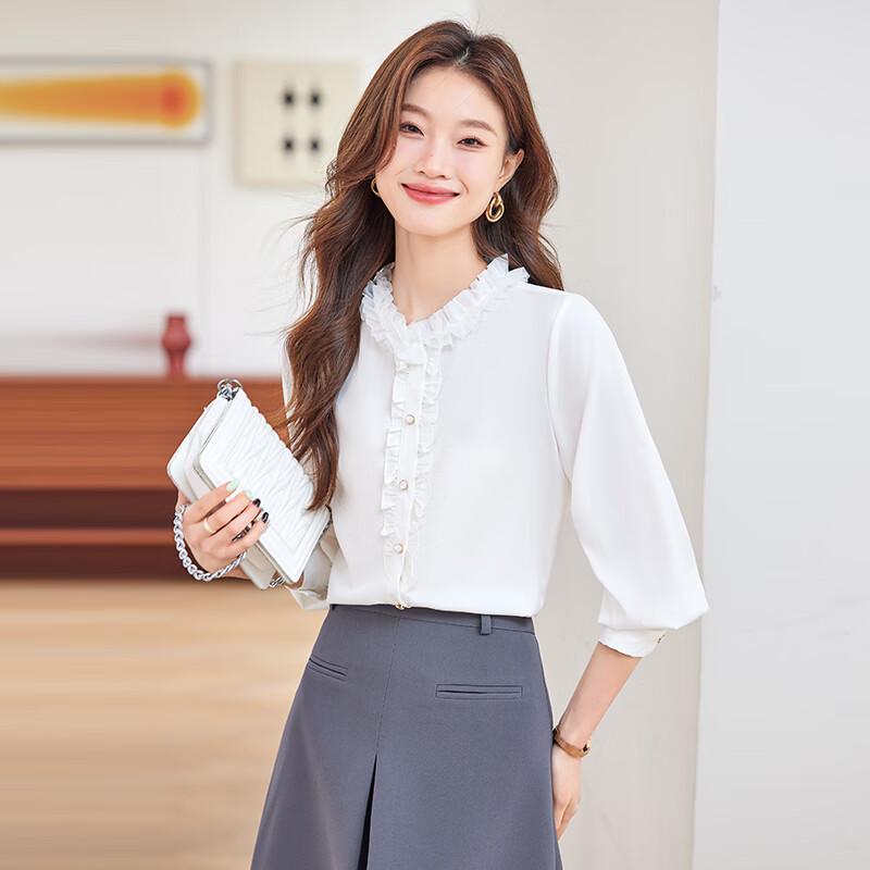 Women's Ruffled Stand Collar Long Sleeve Blouse