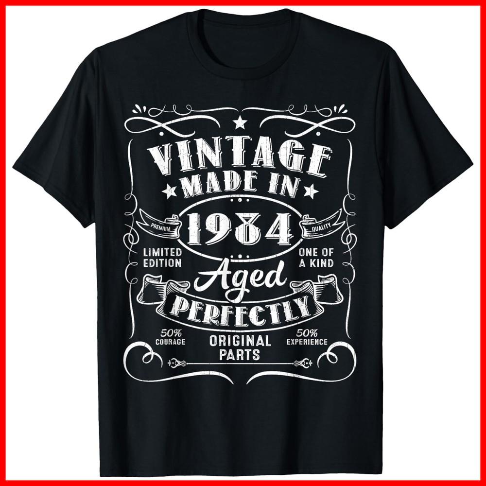 Vintage 40th Birthday Decorations Men Funny 1984 Black Cotton T-Shirt Unisex T-Shirt