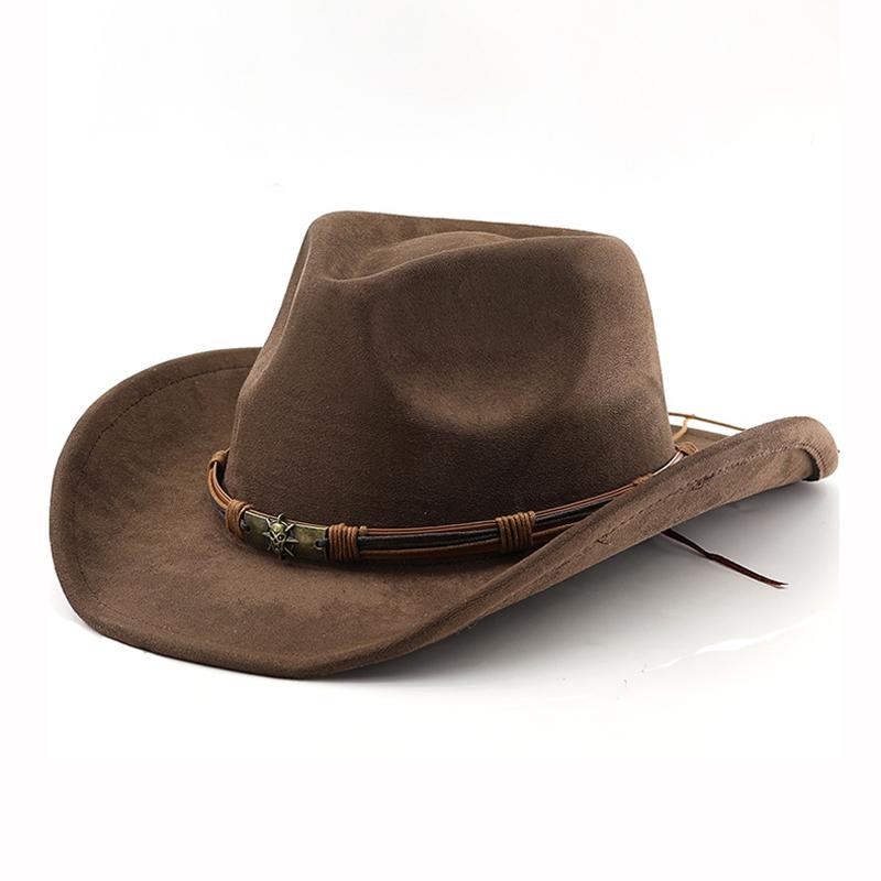Suede Western Cowboy Hat for Men Women Vintage Rolled Brim Felt Jazz Hats Outdoor Travel Knight Hats
