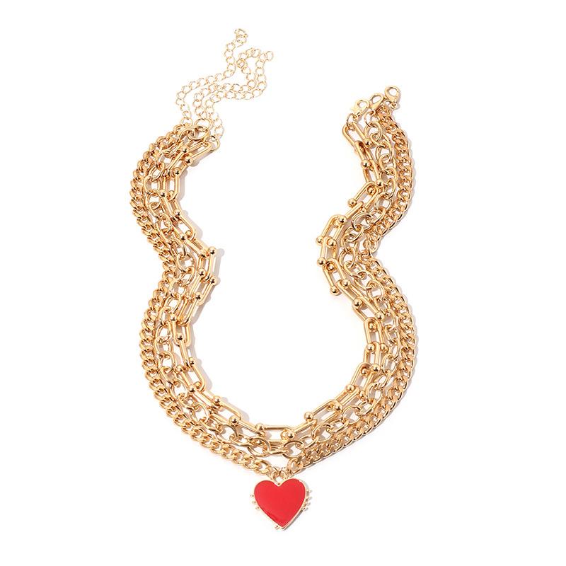 ins cold wind stacked with multi-layer red love necklace, European and American fashion choker hip hop hiphop collarbone chain
