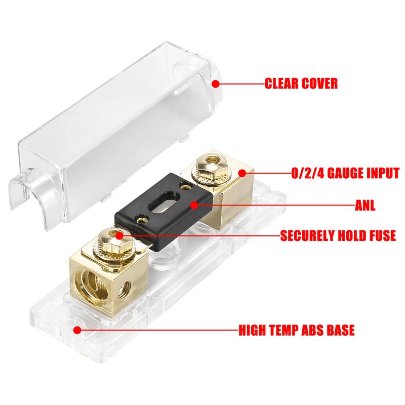 X Autohaux 4Pcs 0/2/4 Gauge Inline ANL Fuse Holder ANL Fuse Block With 200A 250A 300Amp Electrical Protection Fusible For Cars