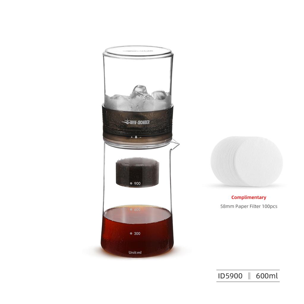 MHW-3BOMBER 600ml Cold Brew Coffee Maker 2-4 Cup Iced Coffee Pot with 100pcs Filter Paper 300 Mesh Fine Filters Camping Tools