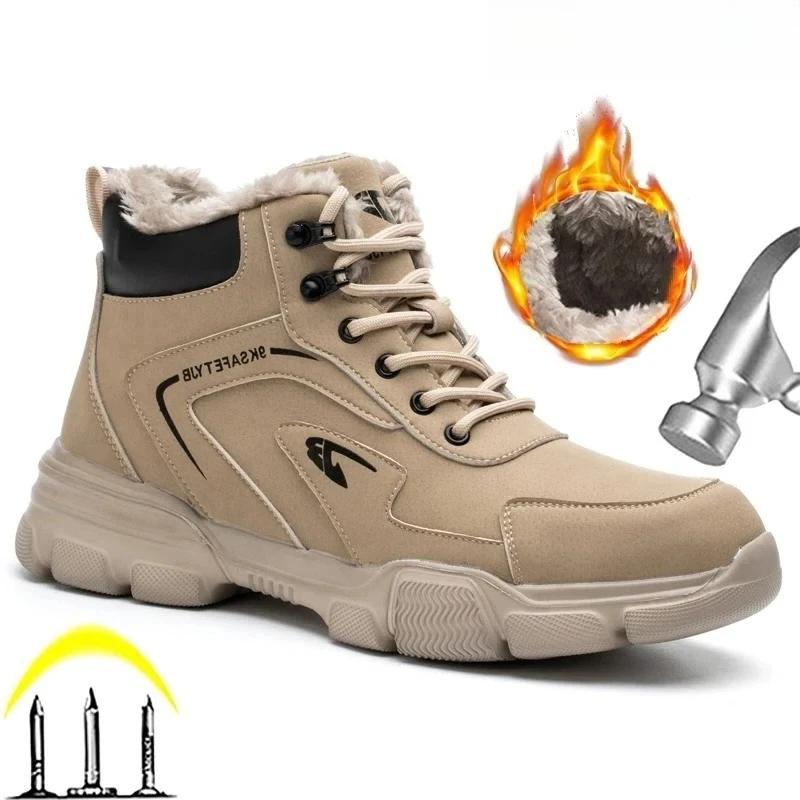 Winter Velvet Men's Safety Shoes Construction Site Safety Boots Men Steel Toe Cap Boots High Top Work Boots Male Safety Footwear