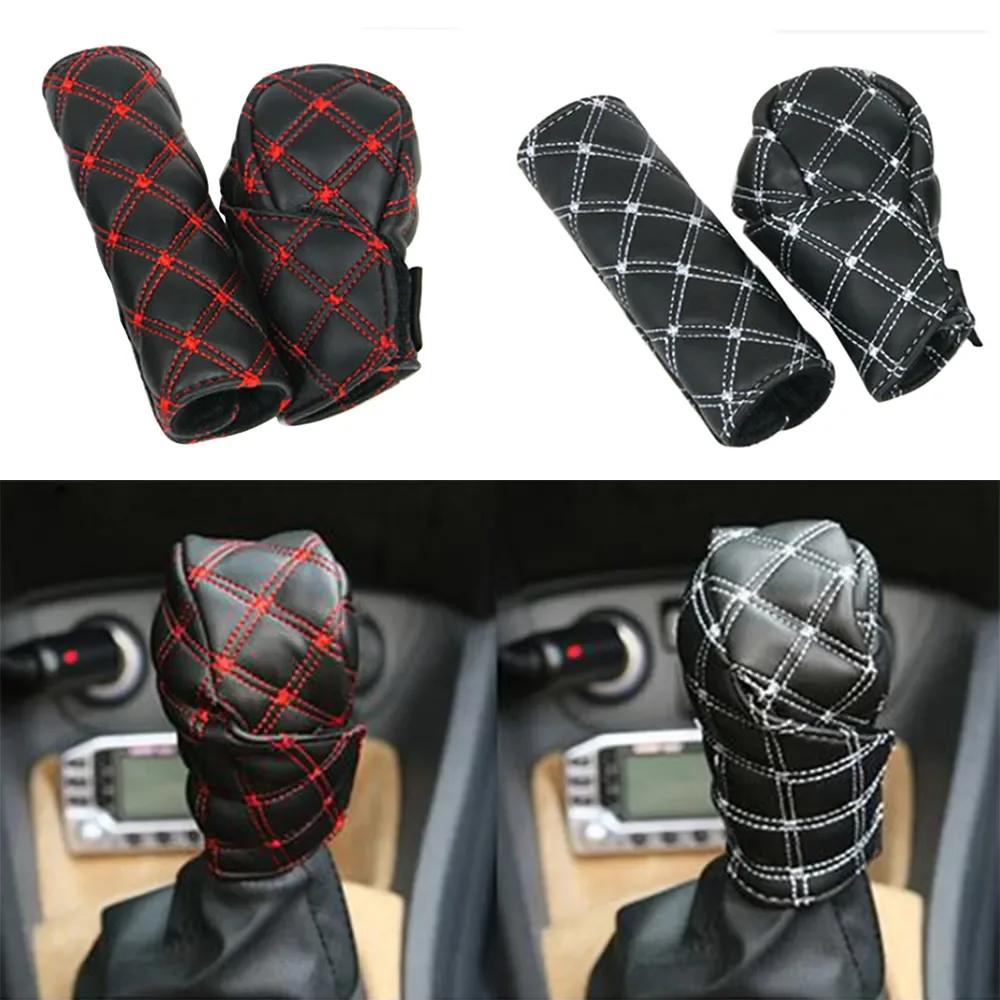 2 in 1 Set Car Faux Leather Gear Shift Knob Cover Hand Brake Cover Sleeve Car Interior Protect Cover Accessories New