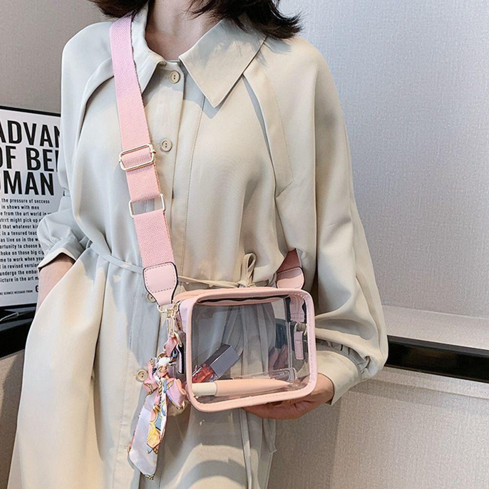 Fashion Shoulder Messenger Bag Transparent Crossbody Bag for Women Girls PVC Jelly Handbag(Excluding ribbons)