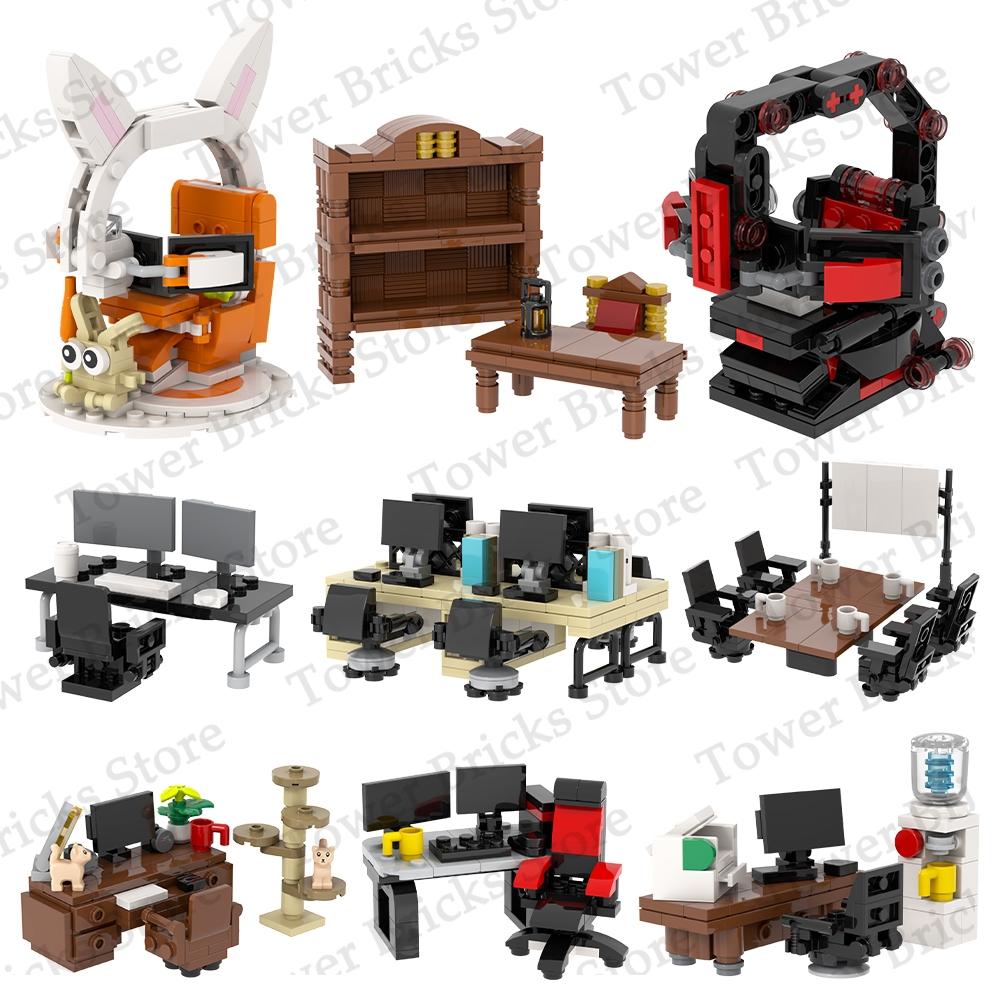 MOC City Computer Table Bricks Furniture Office Desk Room Compatible Figure Building Blocks Toys For Children Adult Friends Gift