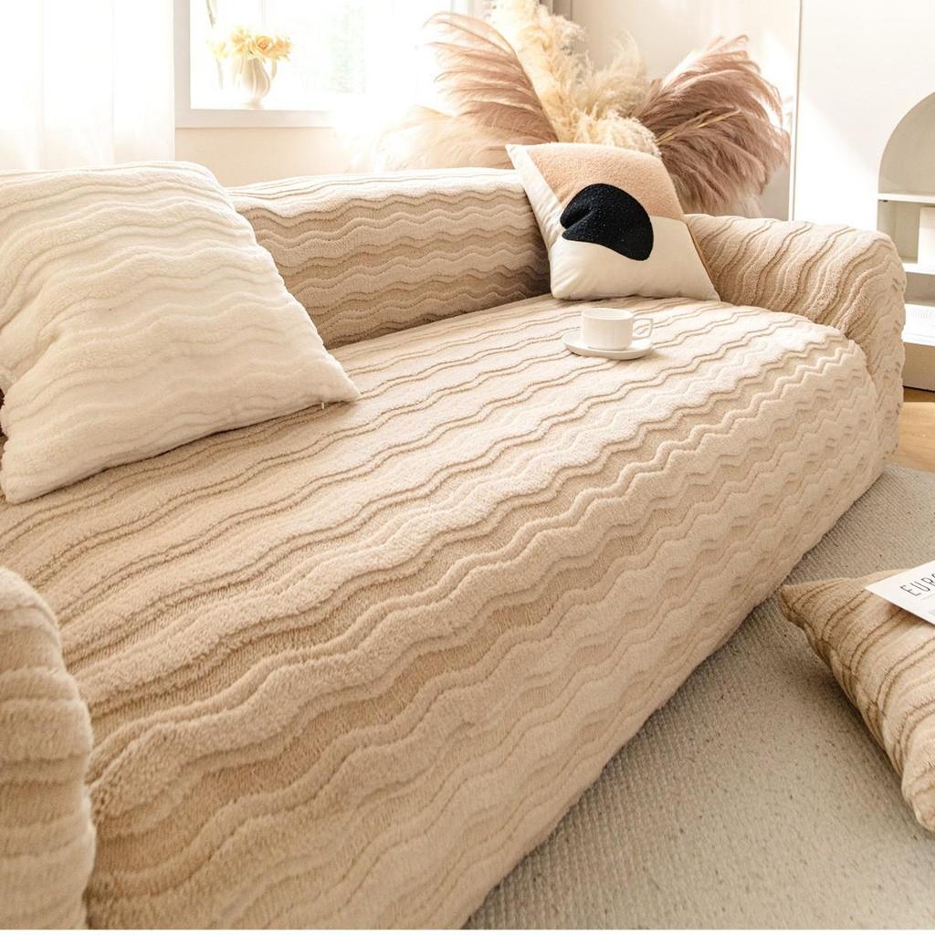 Cream Windshu Velvet Straight Row Sofa Cover All Inclusive Winter Cover New Thickened Anti Cat Scratch Protective Cover