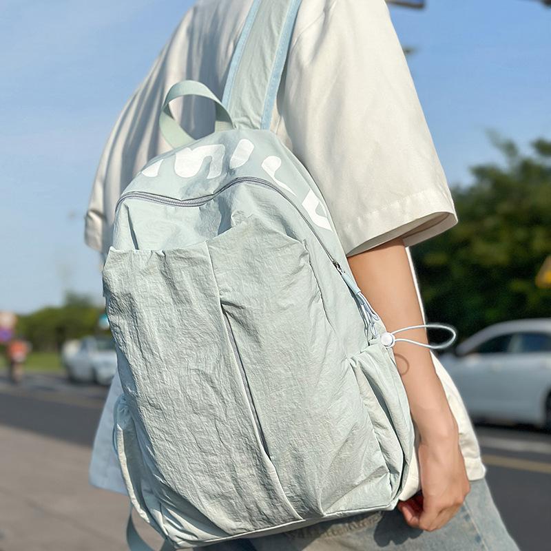 Solid color simple outdoor style backpack women's design sense niche light schoolbag high-value large-capacity backpack women
