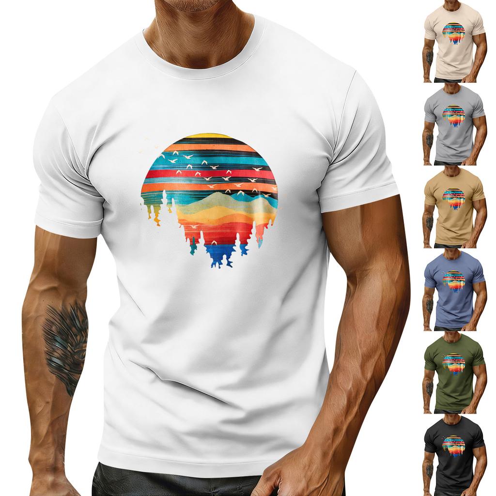 Pánské sváteční tričko s kulatým výstřihem a krátkým rukávem, ležérní sportovní top