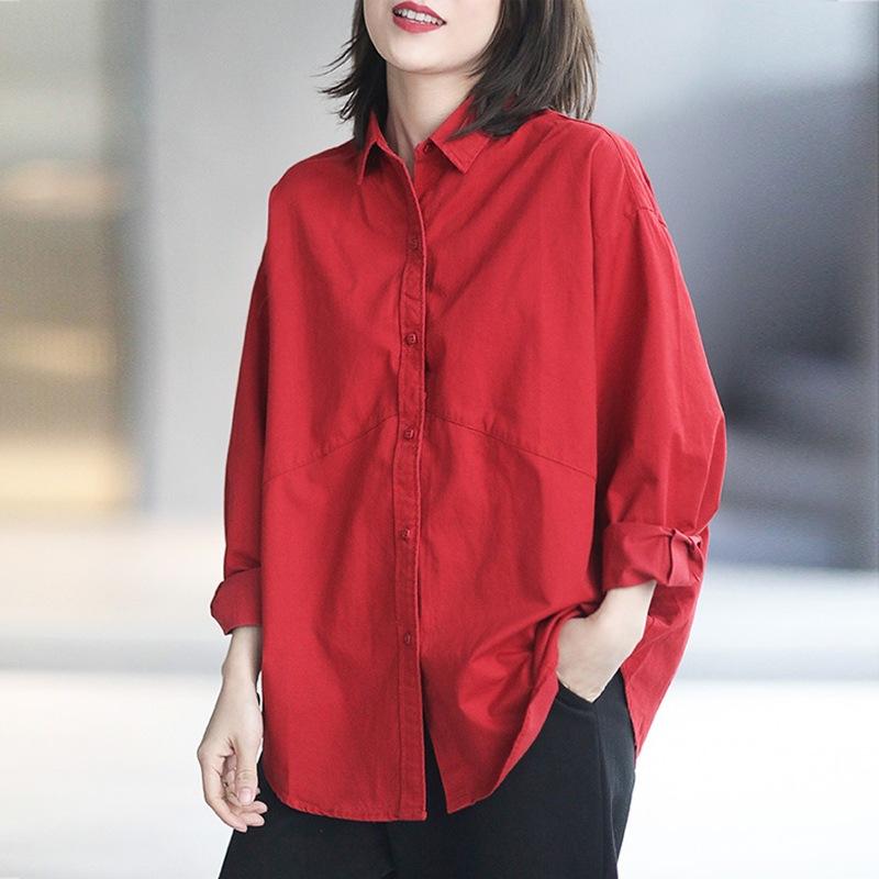 Solid Color Cotton and Linen Shirt Top for Women Autumn Loose Linen Shirt Medium To Long Length Shirt